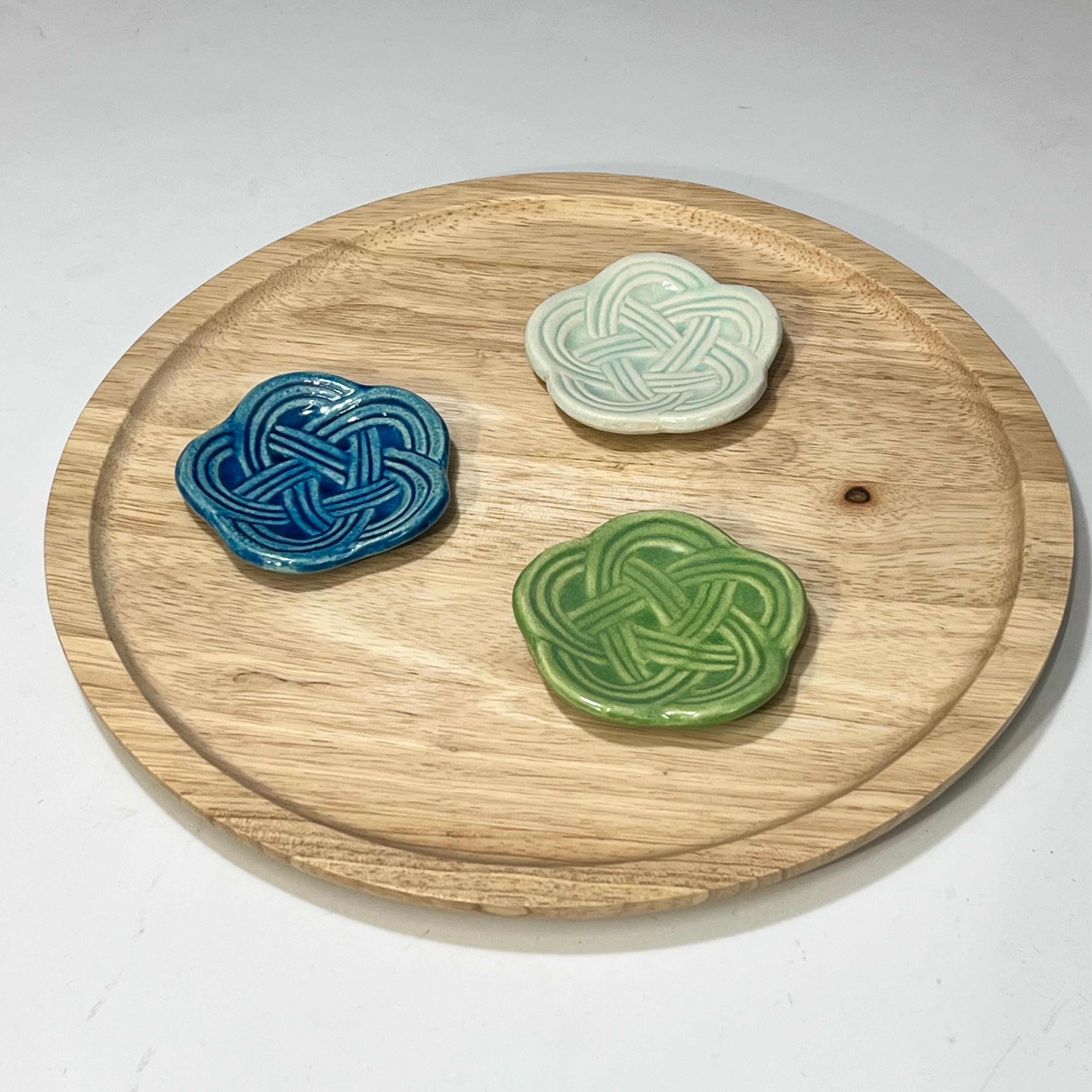 六彩 水引豆皿 あさぎ釉