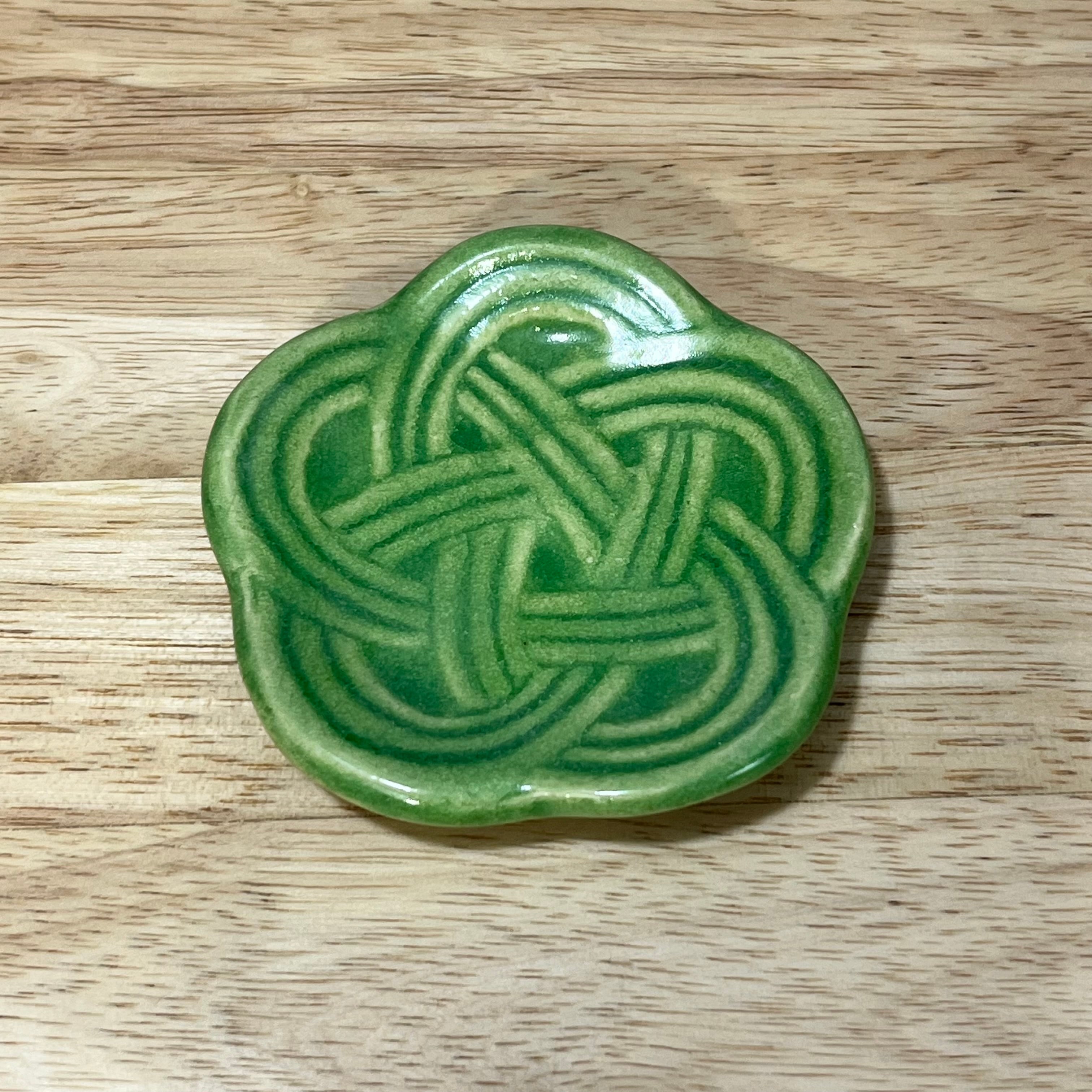 「長寿」「魔除け」「絆」を表す結び方である、梅結びの水引をモチーフとした豆皿です。