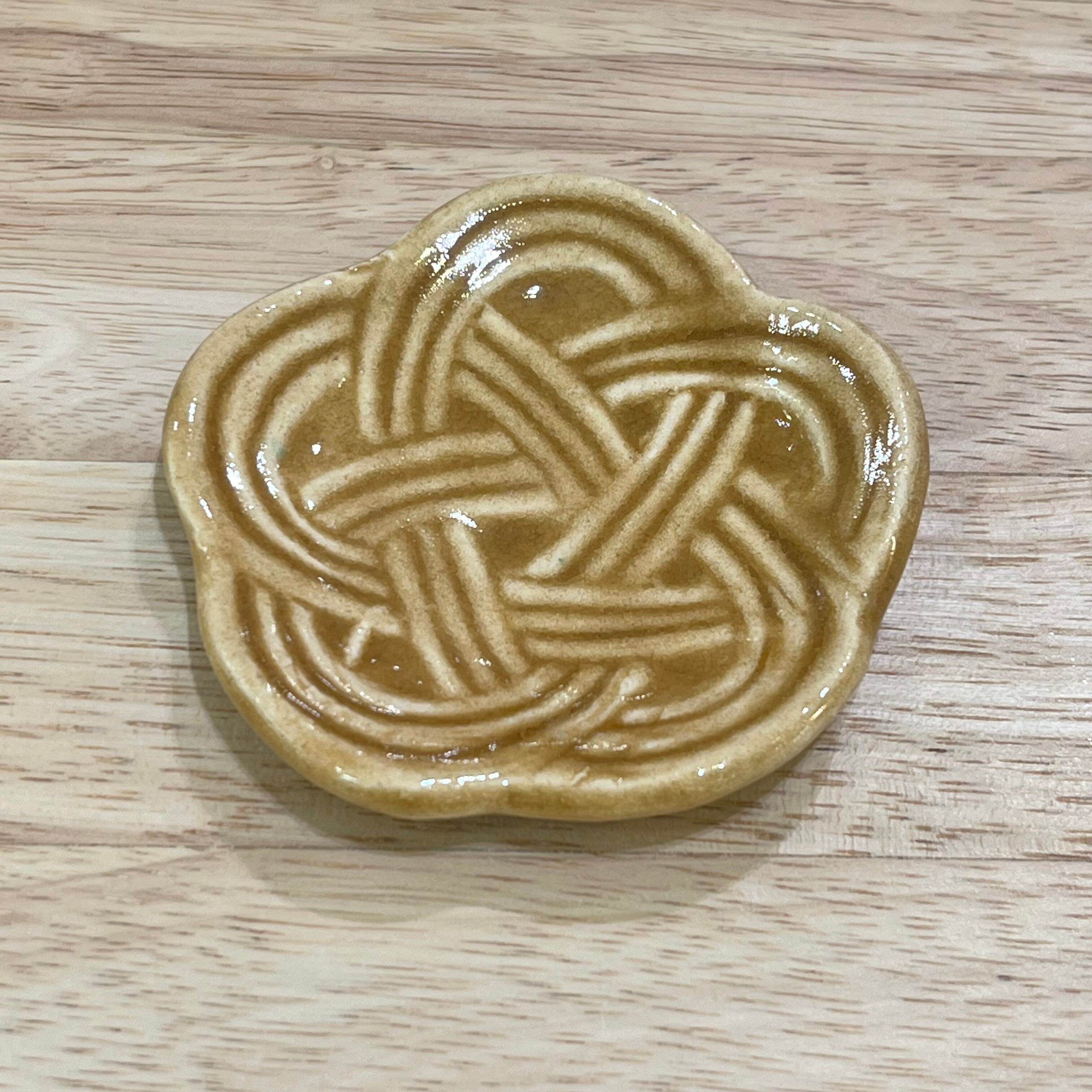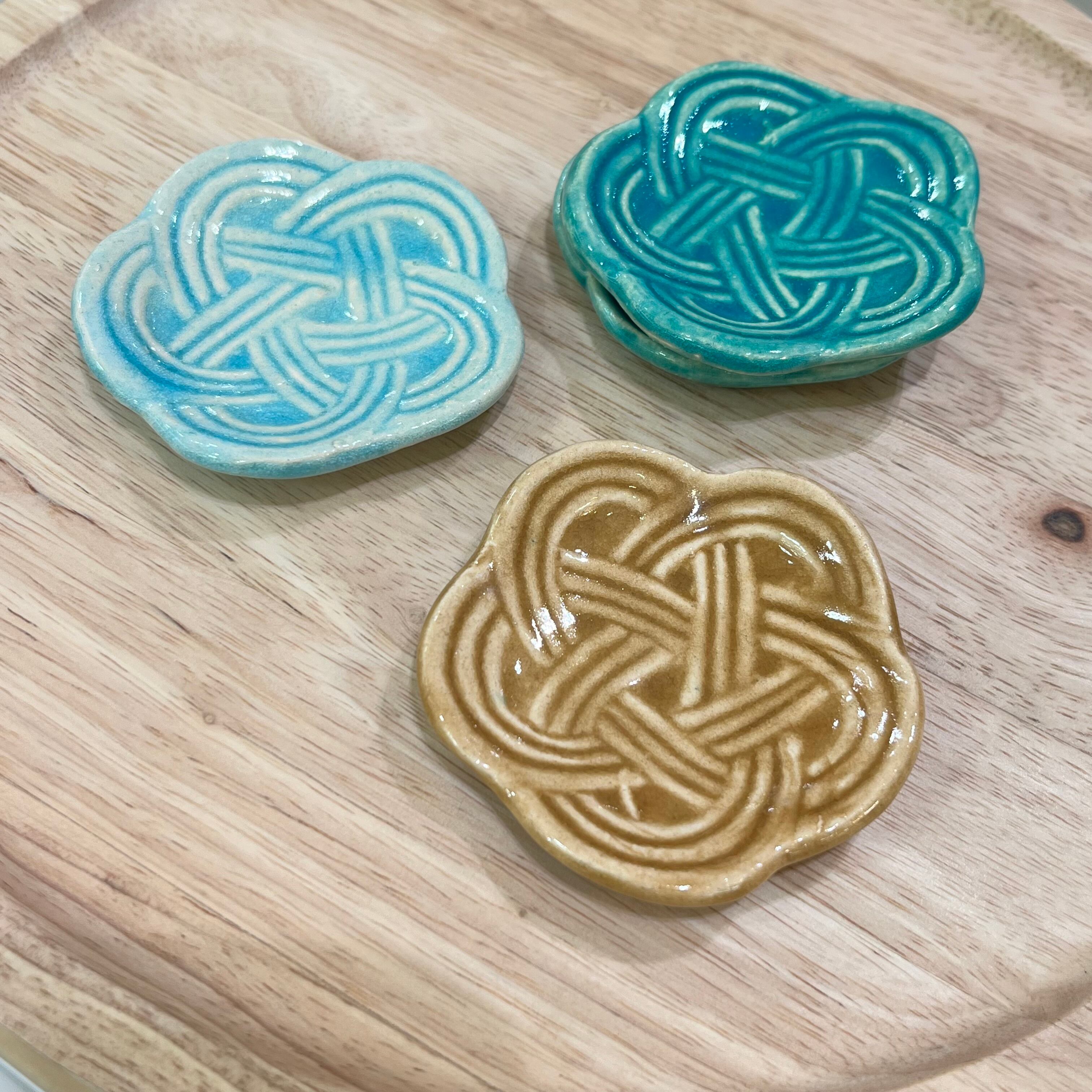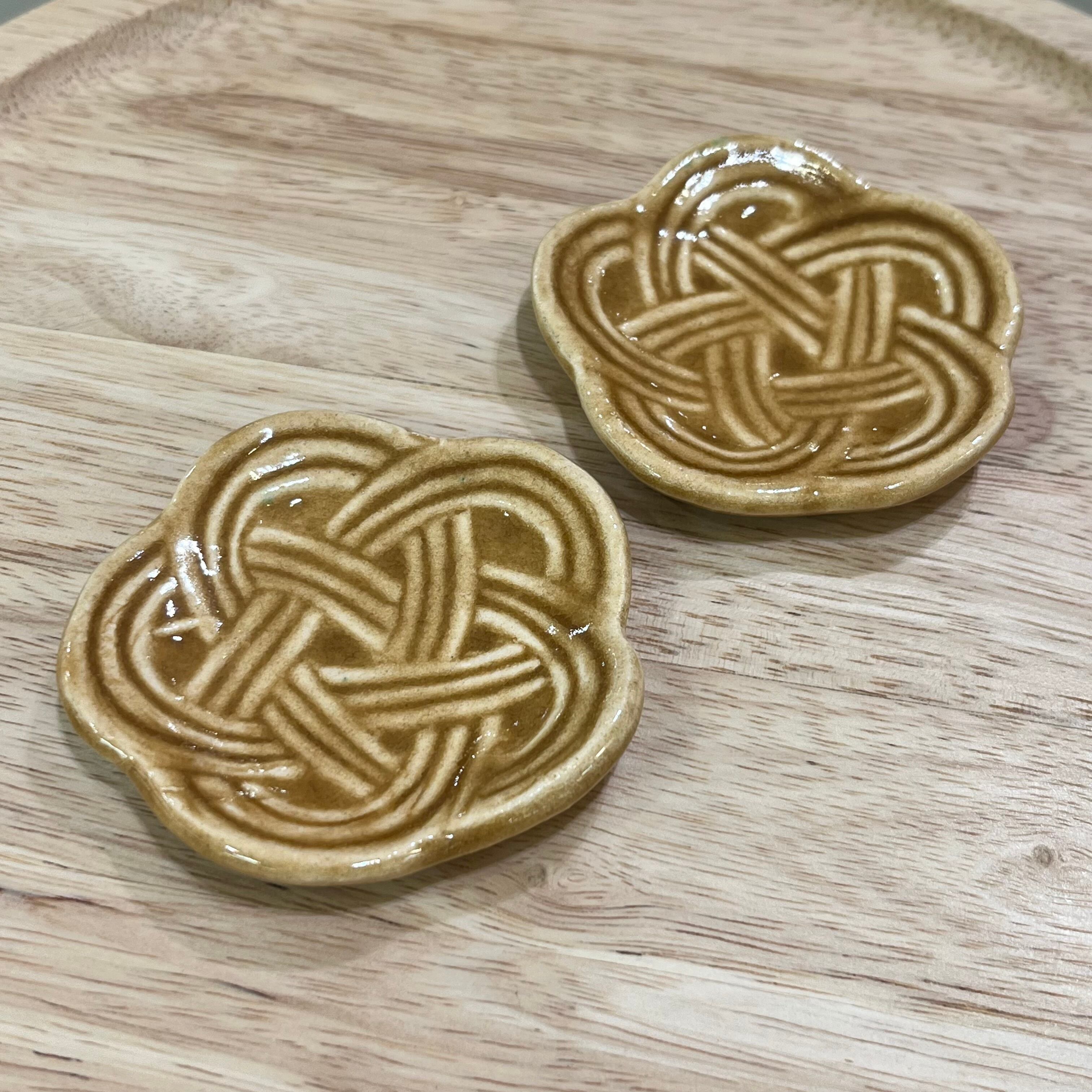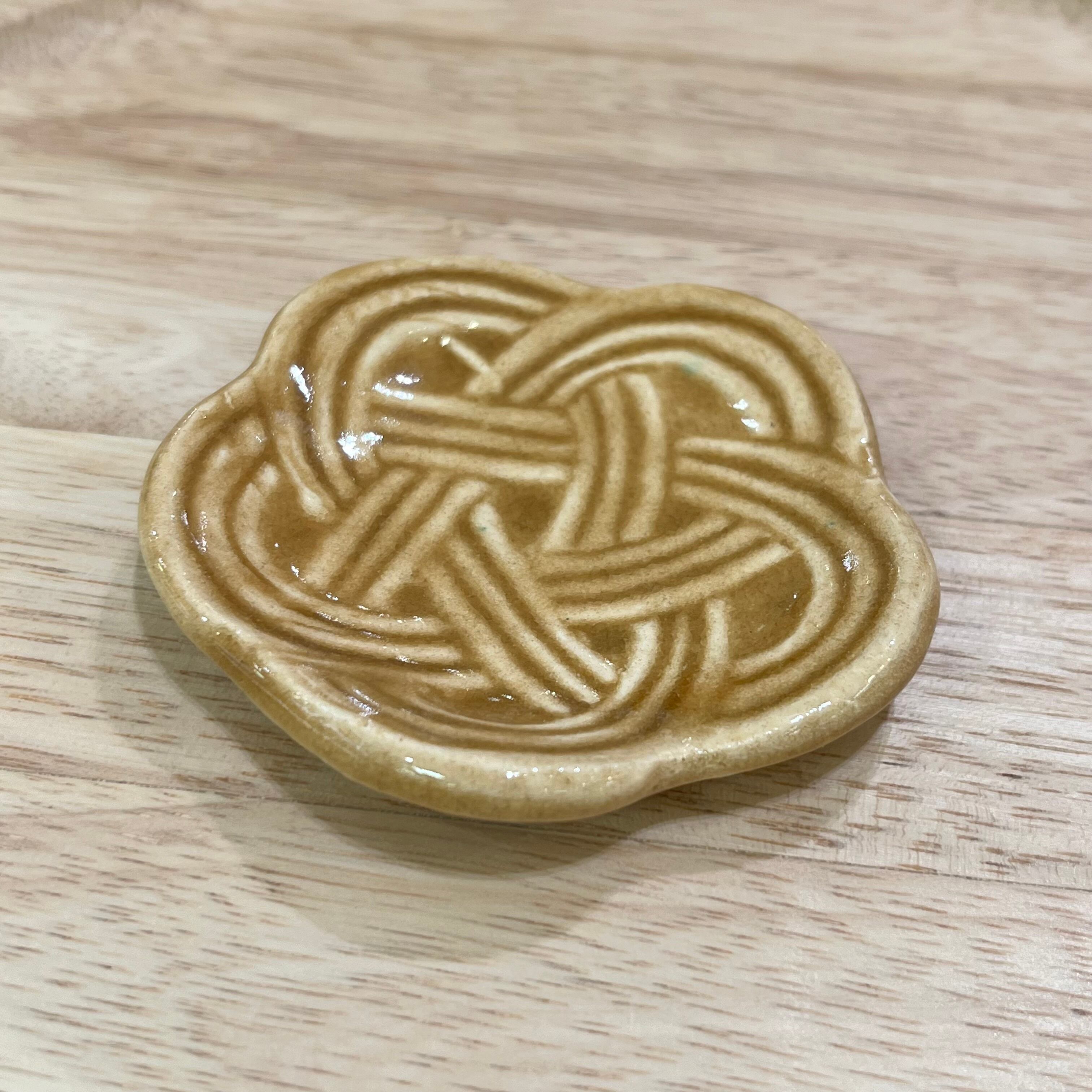 「長寿」「魔除け」「絆」を表す結び方である、梅結びの水引をモチーフとした豆皿です。