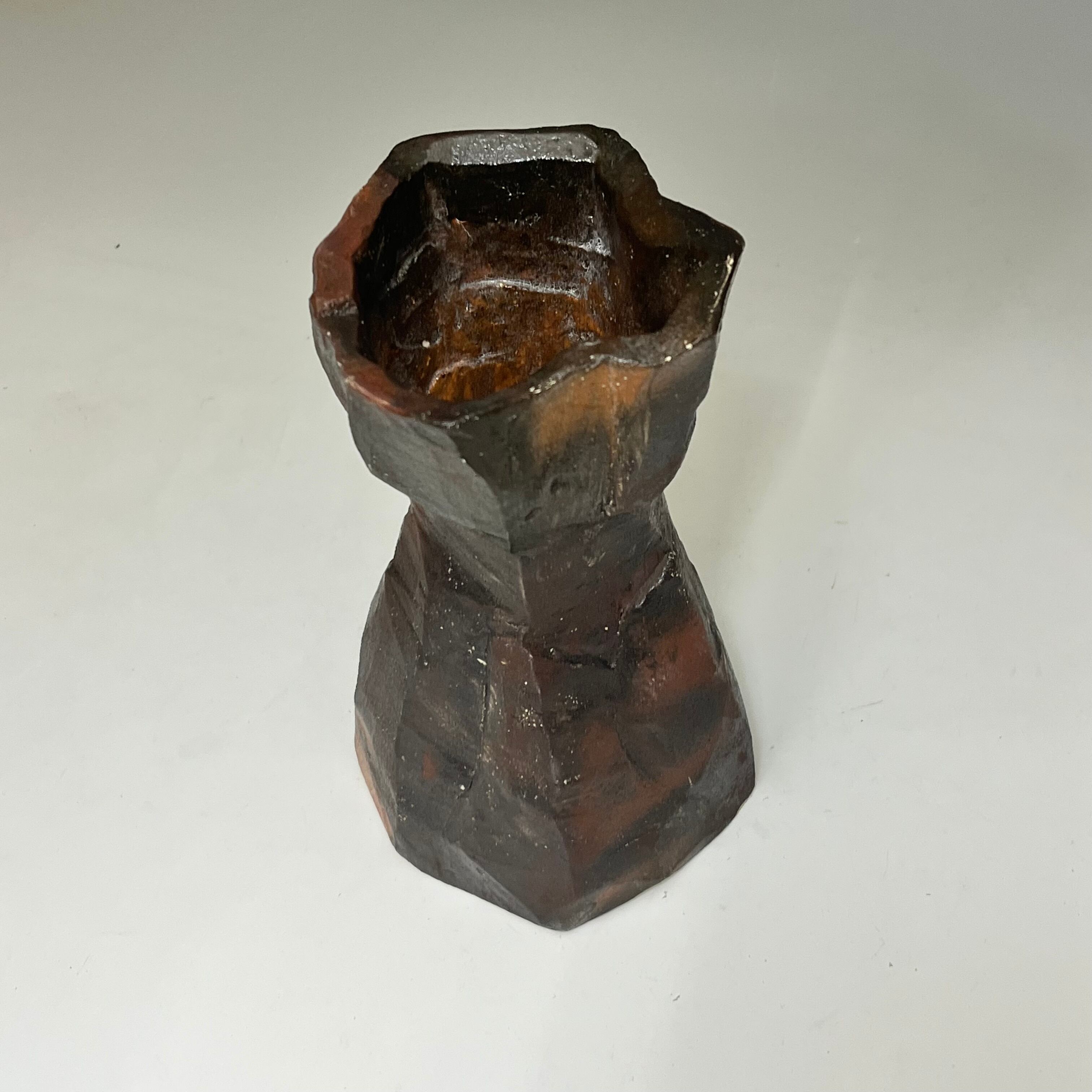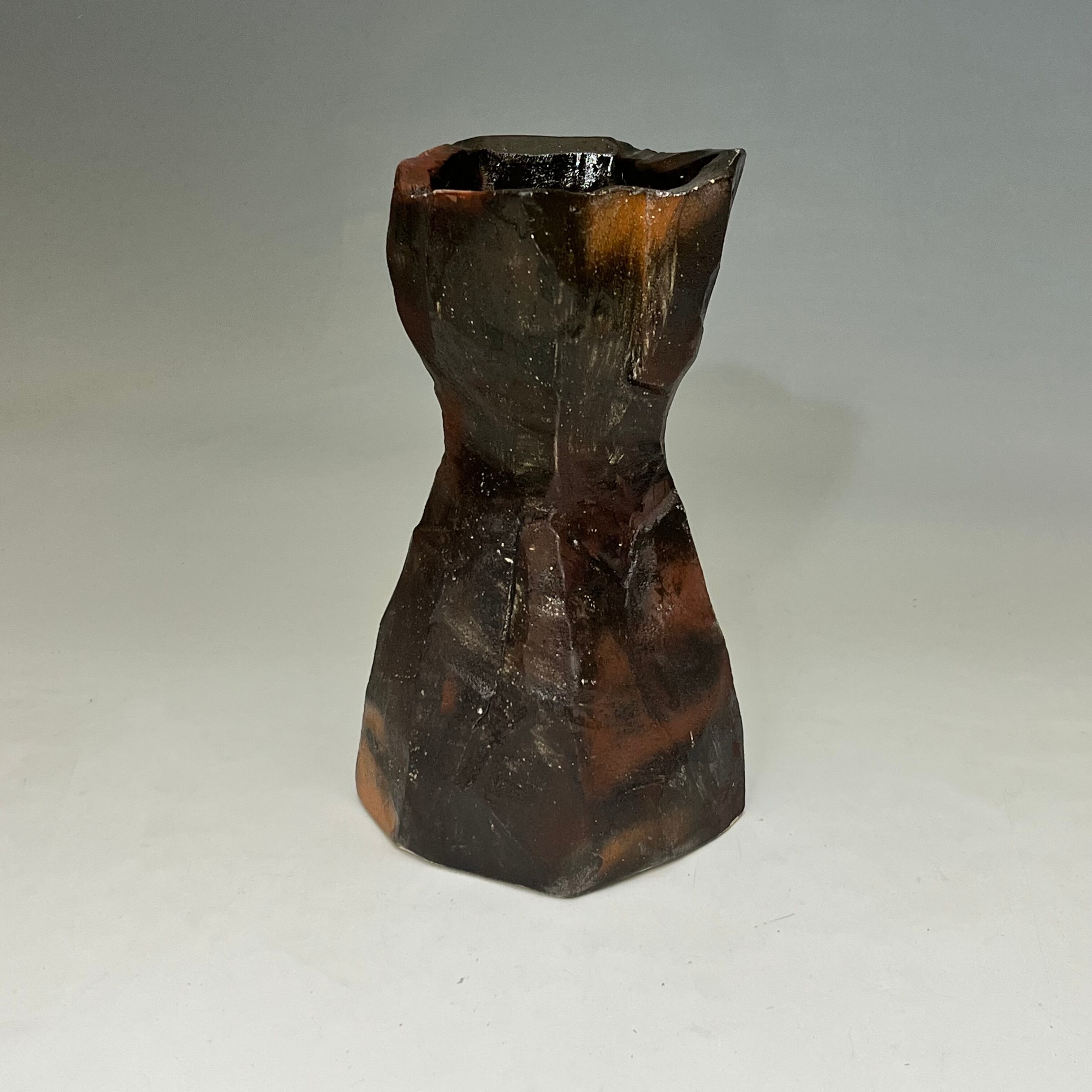 九世吉向松月 赤窯変面取花入